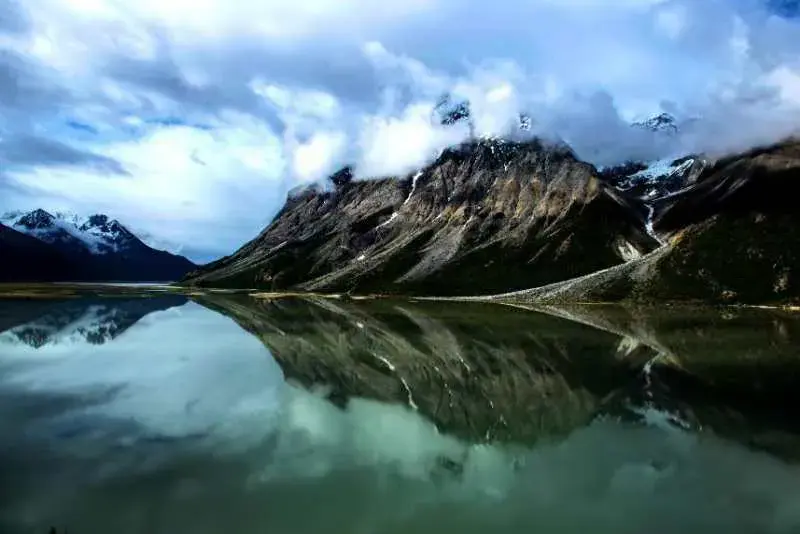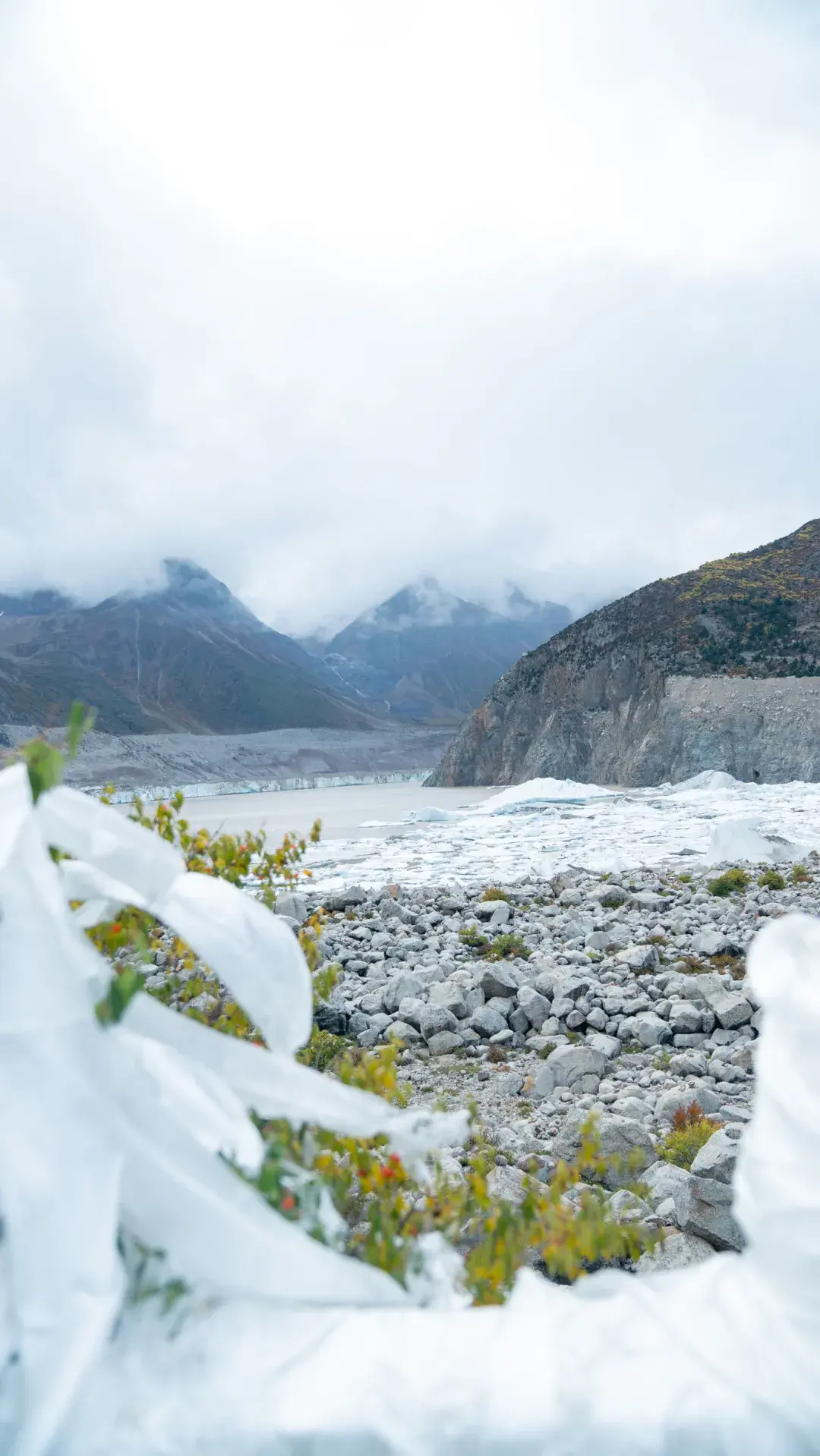 在八宿来古村,环顾四周可见至少6条冰川,统称来古冰川群。冰川从海拔6600多米的山峰一路倾泻至海拔4000米左右,站在它宽阔的冰体之上,犹如穿越到冰河世纪。当我们站在阳光照耀下绝美的天然蓝冰洞里,仿佛穿越进童话之中。当日头渐渐落下,在然乌湖畔,万丈金光从天而降照射在雪山之巅,一幅“日照金山”之景就此“绘制”完成。