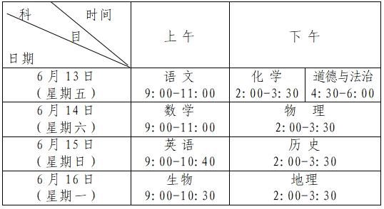 具体各科考试时间安排情况如下
