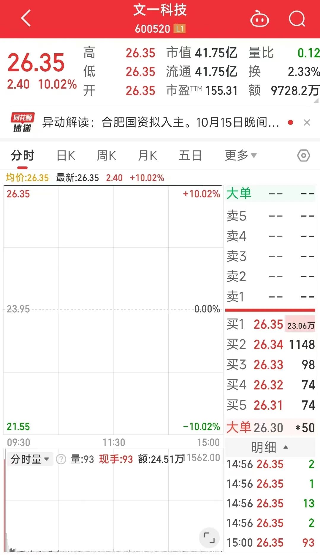 此番入股文一科技的利好消息超过市场预期。10月16日文一科技复牌后开盘即涨停。