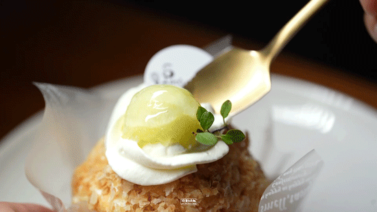 想问问老板娘是不是拿捏了水果命门的甜品天才,让蜜瓜和拿破仑的搭配仿佛天作之合。「蜜瓜拿破仑」,从外到内是打碎的拿破仑酥皮、新鲜动物奶油、鲜切蜜瓜、现打的卡仕达酱,入口层层递进,不会很甜,像是刮进最里的绿色台风,属于蜜瓜的香甜感萦绕始终。