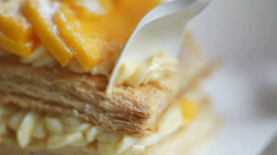 上海拿破仑单品榜第一,出自去年做出“可以吃的提拉米苏杯”的悠乐烘焙。他家的拿破仑为了保证口感和水果新鲜度,也是现场组装,这点好评。芒果拿破仑°