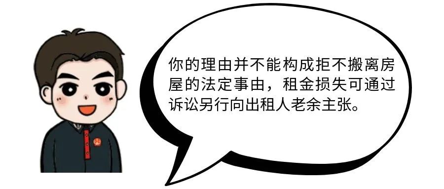 承租人小李这下坐不住了,他觉得自己与房东老余签订租赁合同没到期,而且也联系不上房东,要是现在让他搬走,他租房的费用都打水漂了!于是,小李向法官表示拒绝搬离。