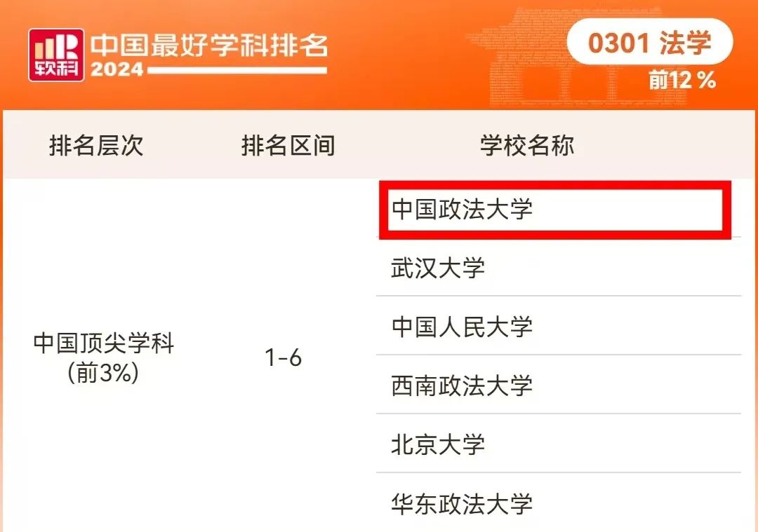 作为全国法学教育和法学理论研究的重镇,近年来我校持续强化法学优势学科地位,学科影响力和美誉度不断增强,连续多年以唯一千分成绩蝉联软科法学排名榜首,总分逐年提高,核心指标持续向好。
