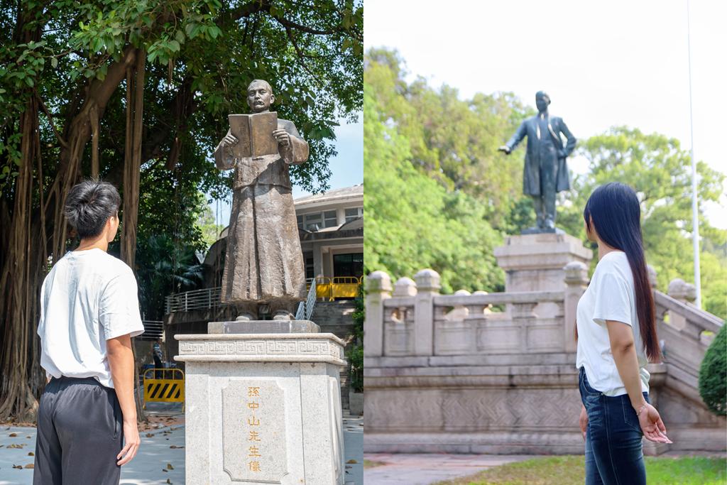 左为华南农业大学中山像,右为中山大学南校区中山像