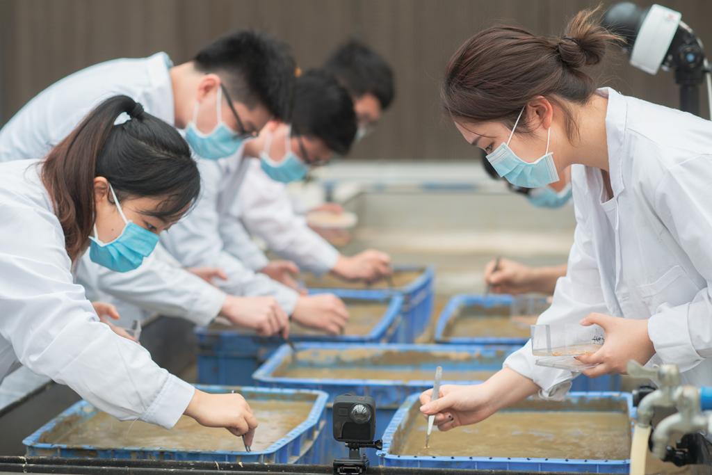 华农学生在广州南沙华农渔业研究院开展工作近年来,华农