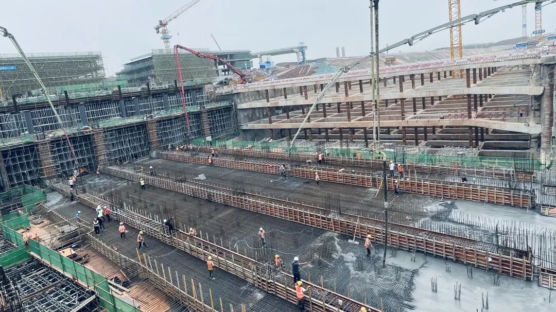 ▲顶板跳仓法浇筑施工作为湖南省首批绿色建造试点项目
