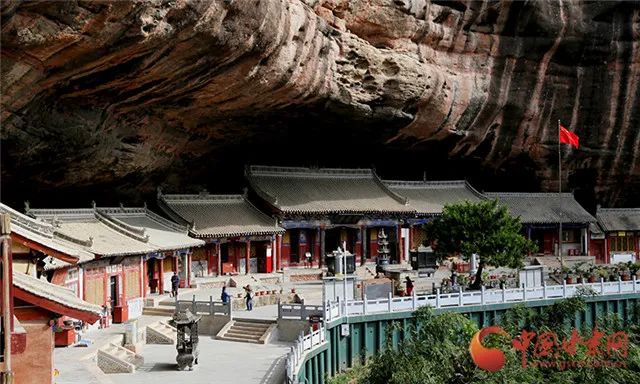 而在西崖,十多个佛窟、殿阁与奇异的景色,让采访团惊叹不已。在山崖根部,本来向外凸出的崖壁却突然内折,形成了一个深近20米、高近20米、长百余米的天然屏障,上面的岩石如同屋檐一样将下面遮护得严严实实,风雨、雷电都难以侵袭。历朝历代的庙宇也多依托这个天然的屏障来修建,形成了一道奇景。