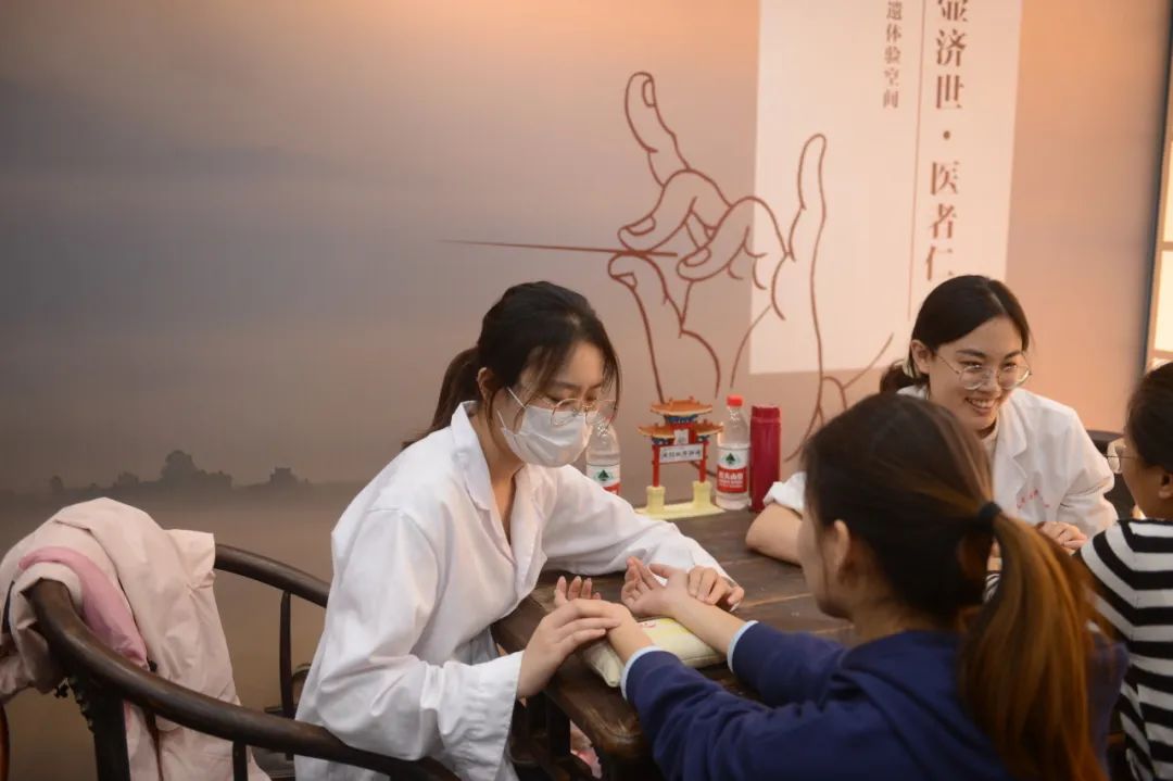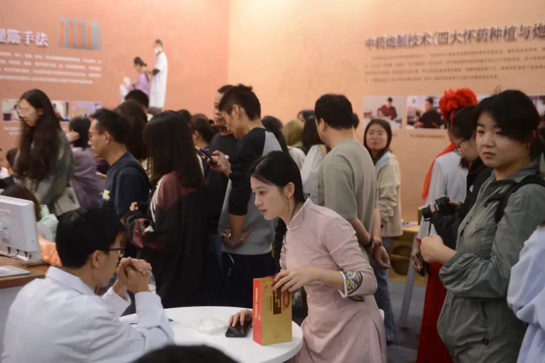 非遗博览会上,美在健康展区简直是热闹非凡!朋友们一个个兴致勃勃,排起了长龙般的队伍,就等着“中医大师”的那一记把脉,体验传承至今的“望闻问切”。