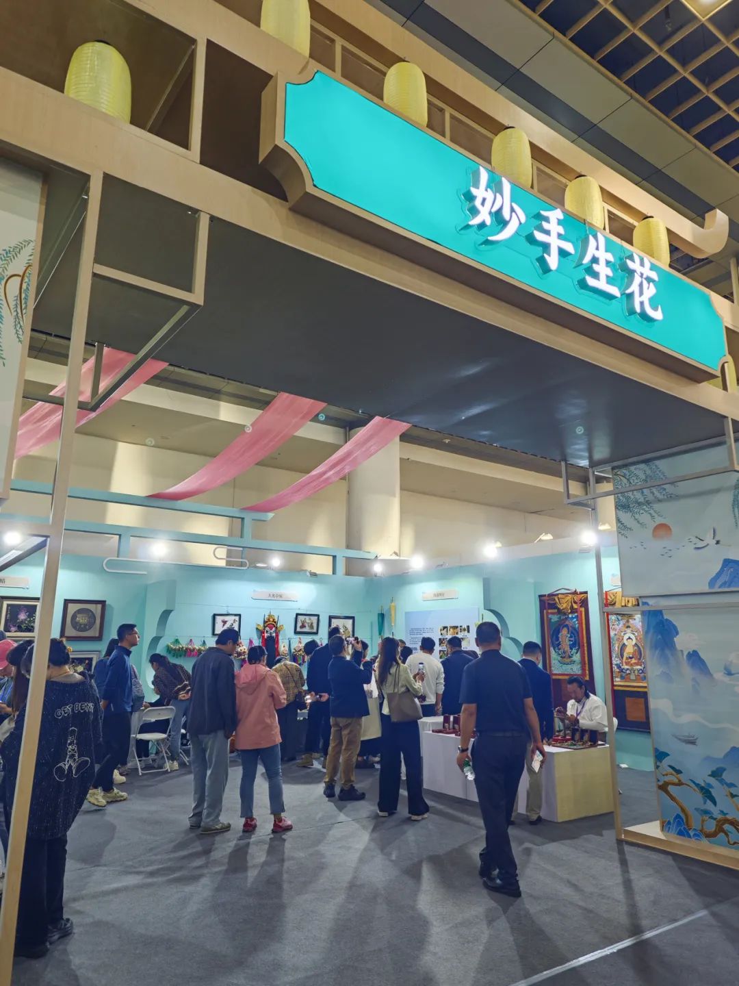走进妙手生花区域,仿佛踏入了一个色彩斑斓的梦幻世界。刘氏竹编、唐卡等7个非遗项目,编织扎制、刻绘类技艺应有尽有,每一幅作品都像是用国潮色彩绘制的现代诗篇,让人目不暇接。