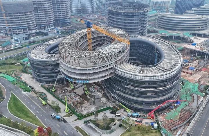 一座座设计前卫的圆形建筑,一层层如花瓣般交错布局的办公空间……登上成都科创生态岛,犹如置身科幻电影中;而花香沁人的环岛生态绿带,四季常青的屋顶空间,又时刻提醒着它的真实。
