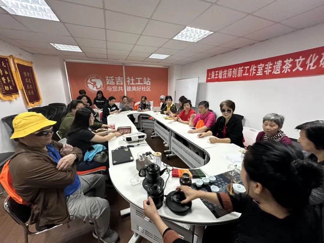 最后一站终点,我们来到了延吉新村街道综合社工站,在社工的带领下,大家参观并体验了传统茶文化,共同学习中国茶的分类及品鉴,为此次city walk之旅画上了圆满的句号。文字/图片:沈莹