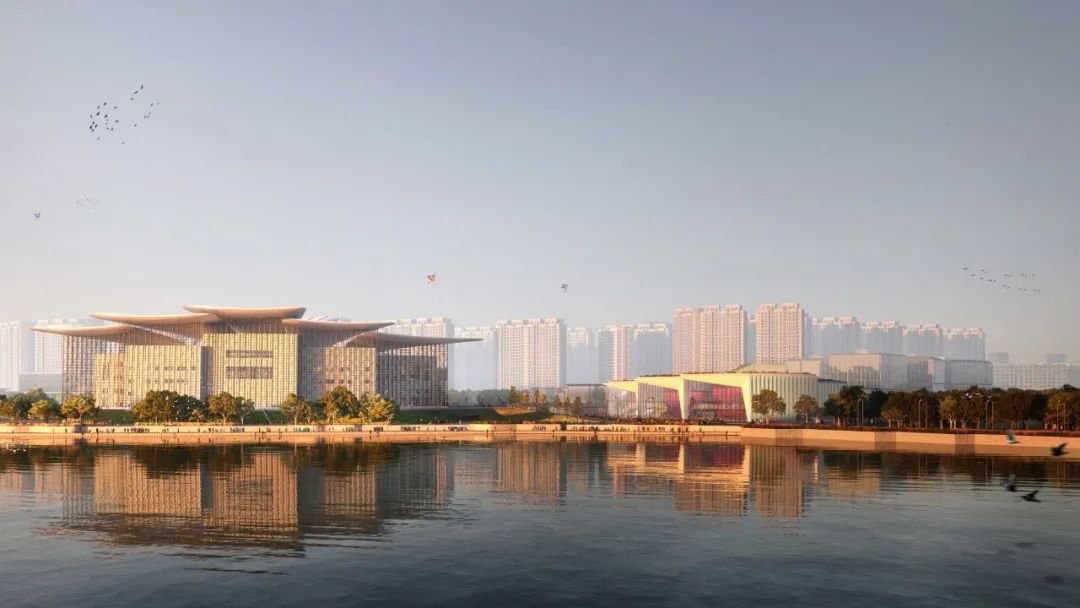 项目包含文化艺术中心、商业和办公三大业态,其中,文化艺术中心总建筑面积约3.9万平方米,包含对标国家大剧院的标准舞台、500座中剧场、350座音乐厅及多功能厅,商业建筑形态以“购物中心+街区”呈现,办公区域坐拥蠡湖湾“绝佳”美景。