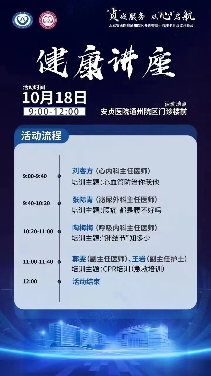 明天(10月18日周五)北京安贞医院通州院区