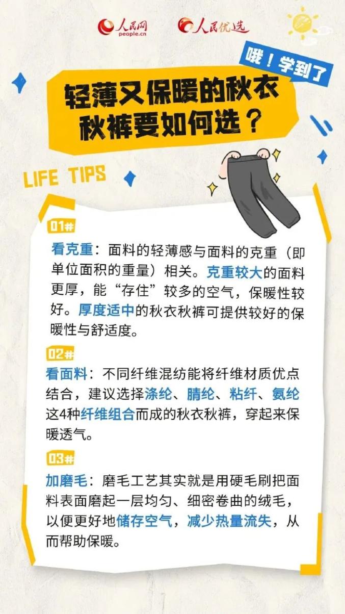 又到了妈妈喊你穿秋裤的季节,秋裤最主要功能不是保暖,而是保持干燥!“发热”“蓄热”秋裤真的发热吗?轻薄保暖的秋衣秋裤该如何挑选?戳图↓↓了解秋裤选购小知识,今年冬天不挨冻!