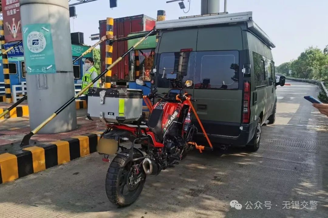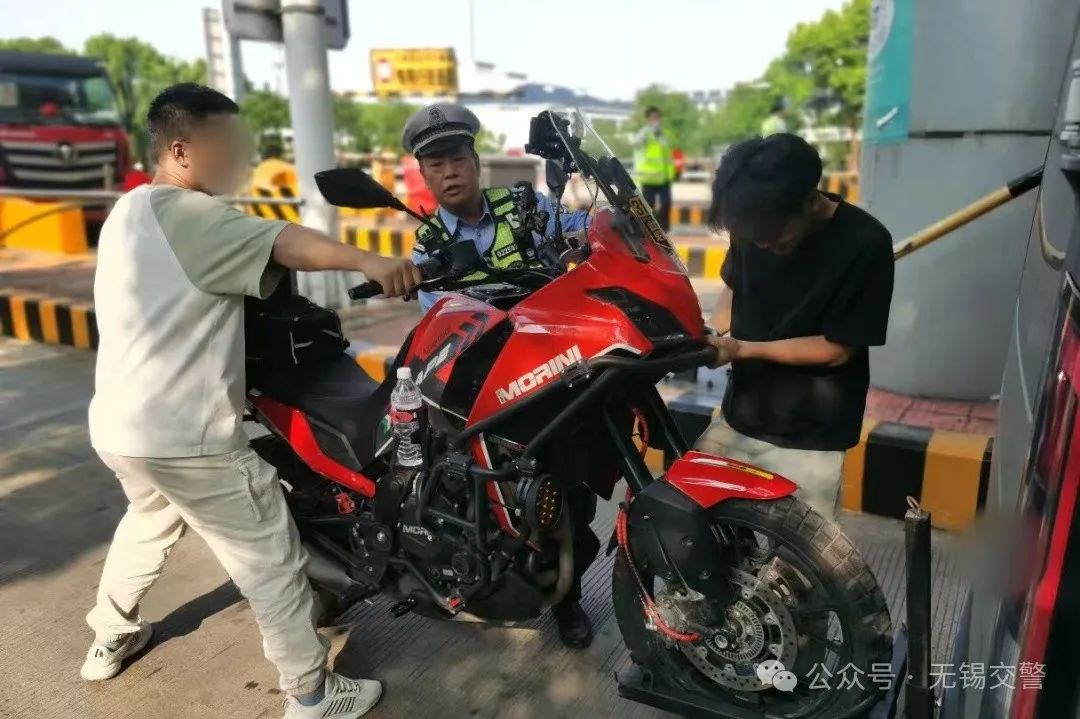 在民警的科普下,王某认识到了自己的错误,后在民警的帮助下将两轮摩托车卸载后离开高速收费站。
