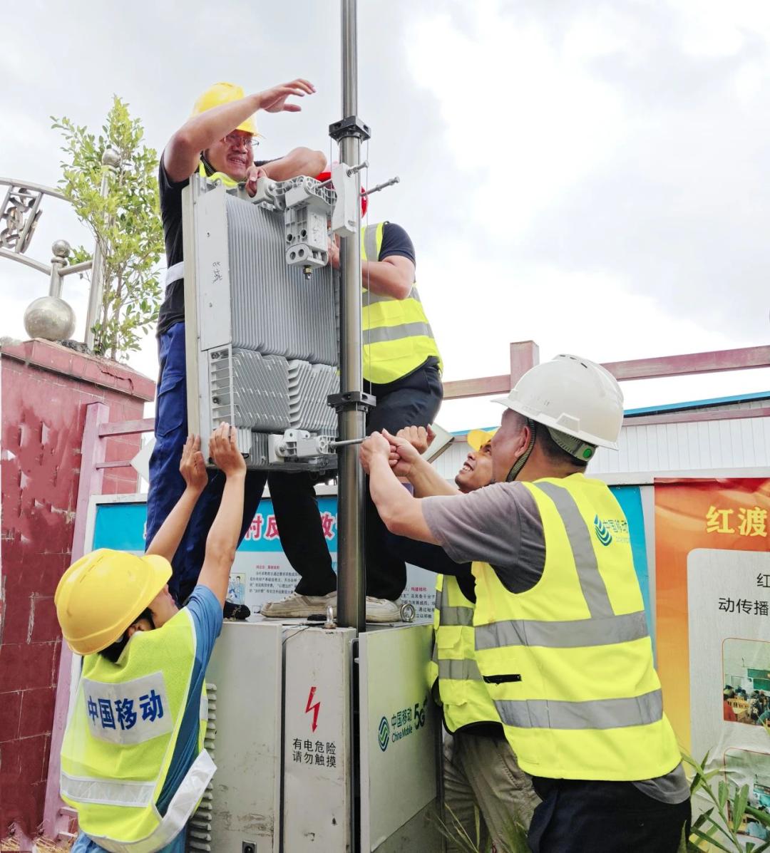 ▲来宾移动车技术人员在沿线安装应急通信机柜此外,公司还完成了比赛沿线道路的两轮全程信号测试,新增15个5G网络小区,对25个4G网络小区进行扩容,并启用32个4G反开3D和通信车小区。