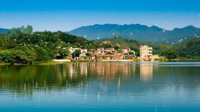 迳口水迳水库,被誉为“广东千岛湖”,湖光与山色在这里完美融合,山峦起伏,翠绿欲滴,与清澈见底的湖水相映成趣,仿佛是大自然精心雕琢的一幅动人画卷。