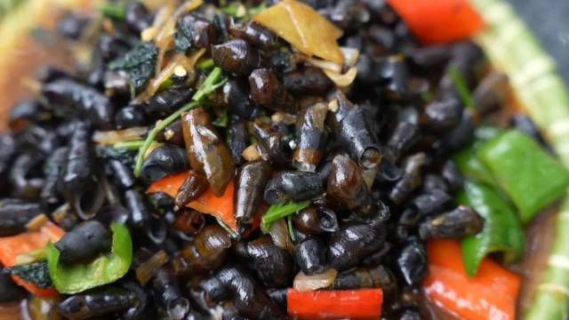 无笃石螺又称“仙螺”,一般生活在清澈的河水里,因此肉质清甜无污染。炒出来的石螺味道鲜美、肉质弹牙,被食客们连连称道,有“不尝仙螺不算到了四会”之说。