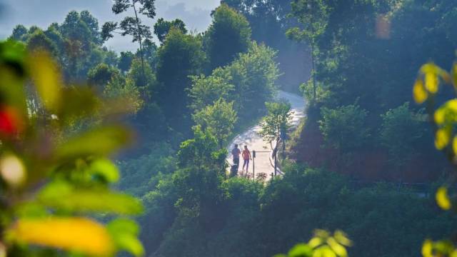 飞鹅岭森林公园依傍高大山峦而建,青翠树木层层叠叠。在这里不仅可以进行森林探秘,更可以远眺江水,感受清风拂面,让人心情分外舒畅。