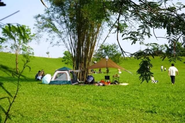 位于四会市江谷镇的龙江河亲水营地,有蜿蜒的河道、冰爽的河水,还有大片绿油油的草坪。微风拂过,漫步其中,有一种神清气爽的感觉。