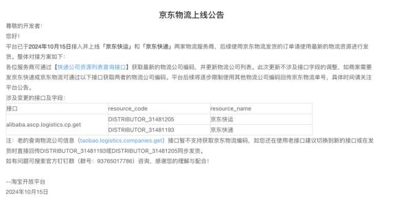 接入后,淘宝天猫商家可选择京东物流作为服务商,消费者也可以在淘宝和天猫APP内查询京东物流轨迹。