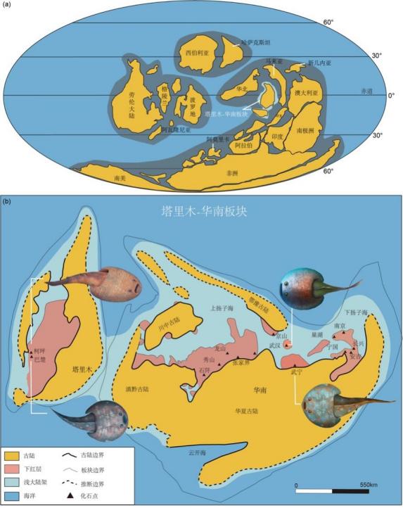 志留纪早期塔里木-华南联合板块古地理及修水鱼科分布。图片来源:参考文献[1][3]