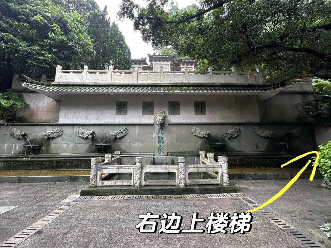 在山顶广场的路口右转,看见九龙泉的牌坊上坡,从碑林后面的步梯一直往上走,机位就在这里啦,准备出大片!
