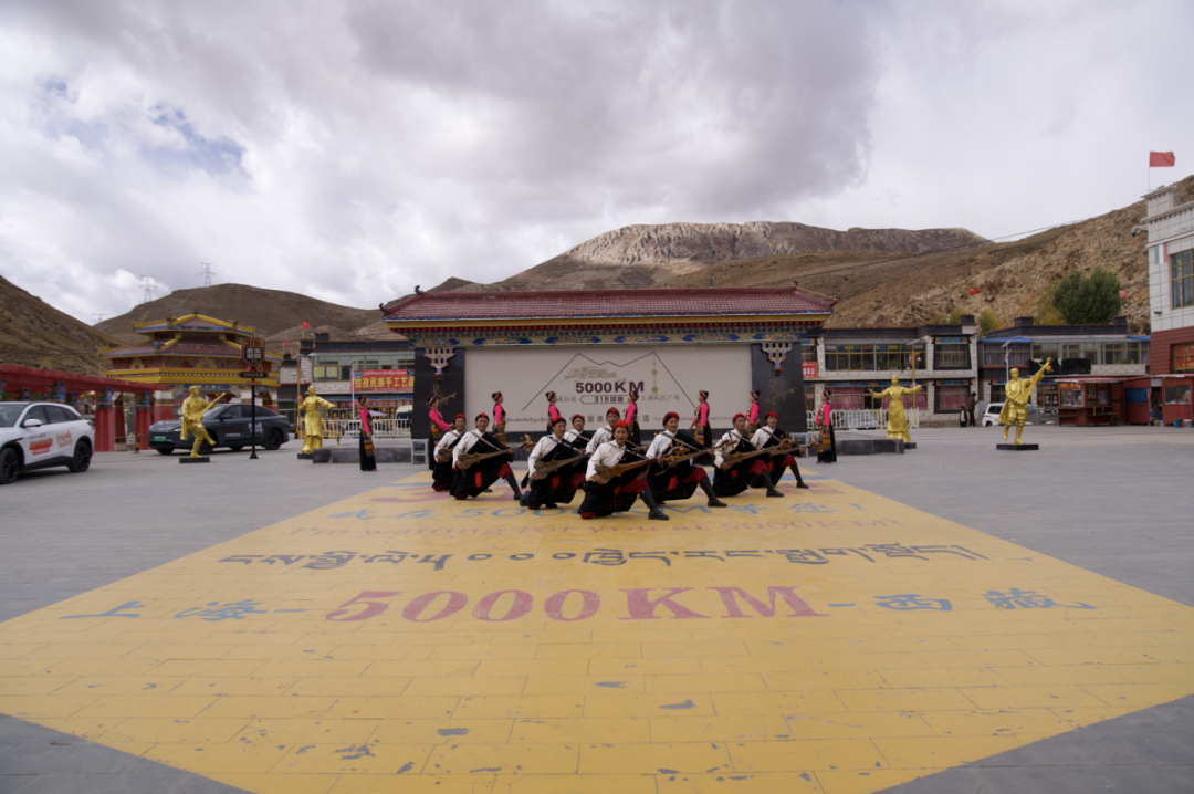 在网红打卡点318国道5000公里纪念碑前,探访团就将欣赏到一场别开生面的拉孜堆谐表演,并向非遗传承人学习基础舞步,体验这一 “藏式踢踏舞”的独特魅力。