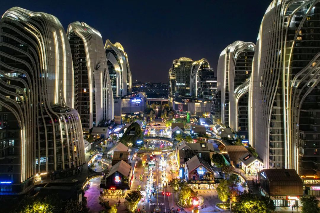 撸串的同时感受乐乐街现代化主题夜市的风景,微醺的同时感受喜玛拉雅楼群的科幻,耳边吹来的是初秋的晚风,驶出南站的高铁呼啸而过……