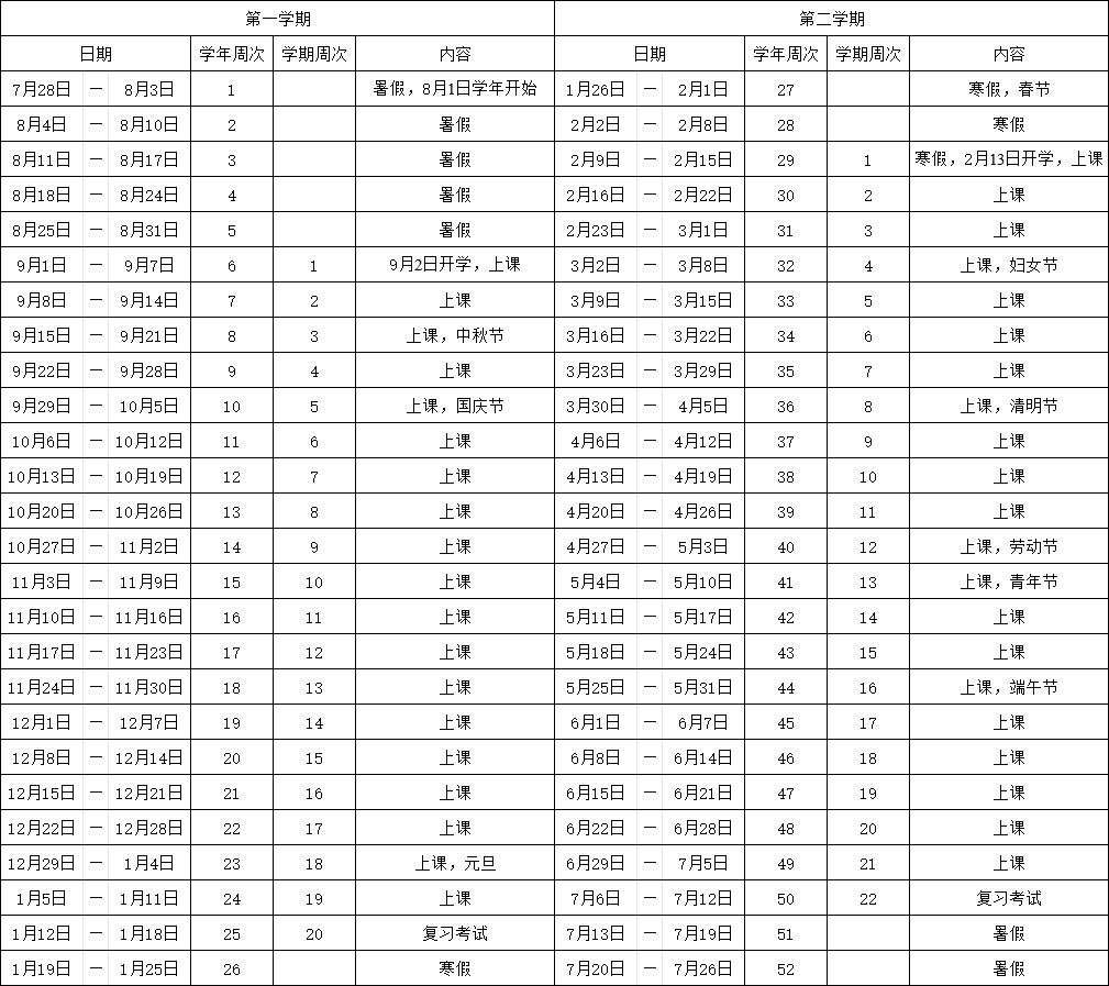 一起来看看2024—2025学年新校历