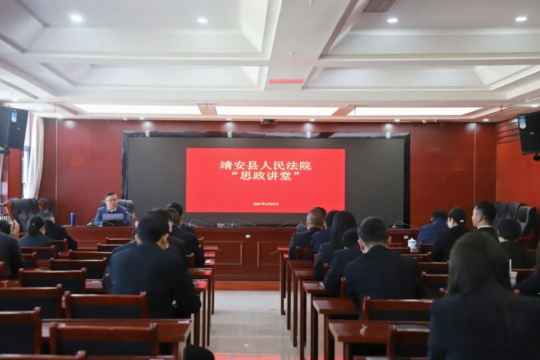 靖安法院院长刘鹏2022年3月28日在“思政讲堂”为干警授第一堂课。