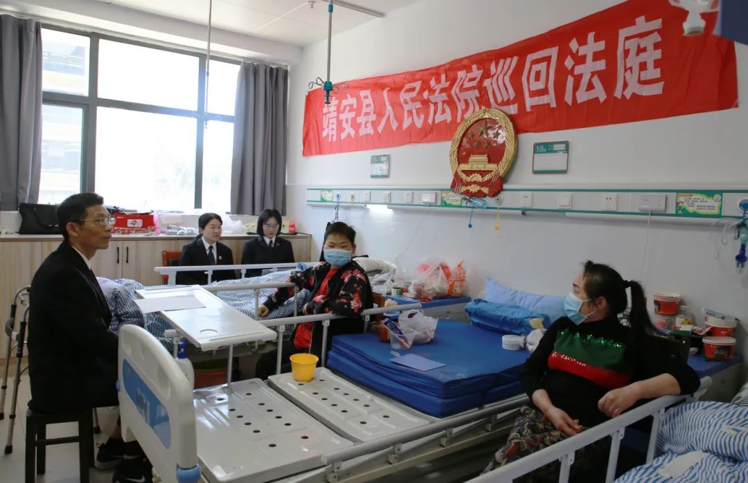 靖安法院法官在病房为当事人诉前调解一起劳务合同纠纷案