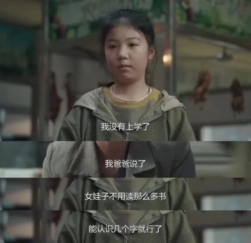 剧中,滑肉店老板的小女儿年纪很小就辍学在店里帮忙,张桂梅一行人问她为什么不去上学,小女孩说:“爸爸说请个人还要花钱,女娃子不用读那么多书,能认识几个字就行了。”