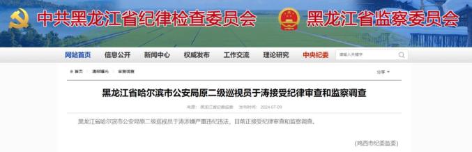 此前,据鸡西市纪委监委消息,于涛已于7月份接受纪律审查和监察调查,当时通报中其身份为哈尔滨市公安局原二级巡视员。