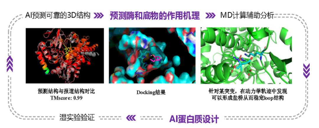 这项优化工作原定2~3年内完成,但分子之心综合运用AI蛋白质技术和量子化学、分子动力学等科学计算方法,实现了蛋白质动态设计,只花了6个月,就设计出了一个活性和特异性更高的新酶。