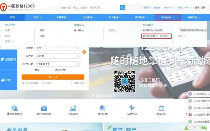 针对更多携带品和行李详情,旅客可以在12306网站、12306App上自行查询,提前做好出行规划。