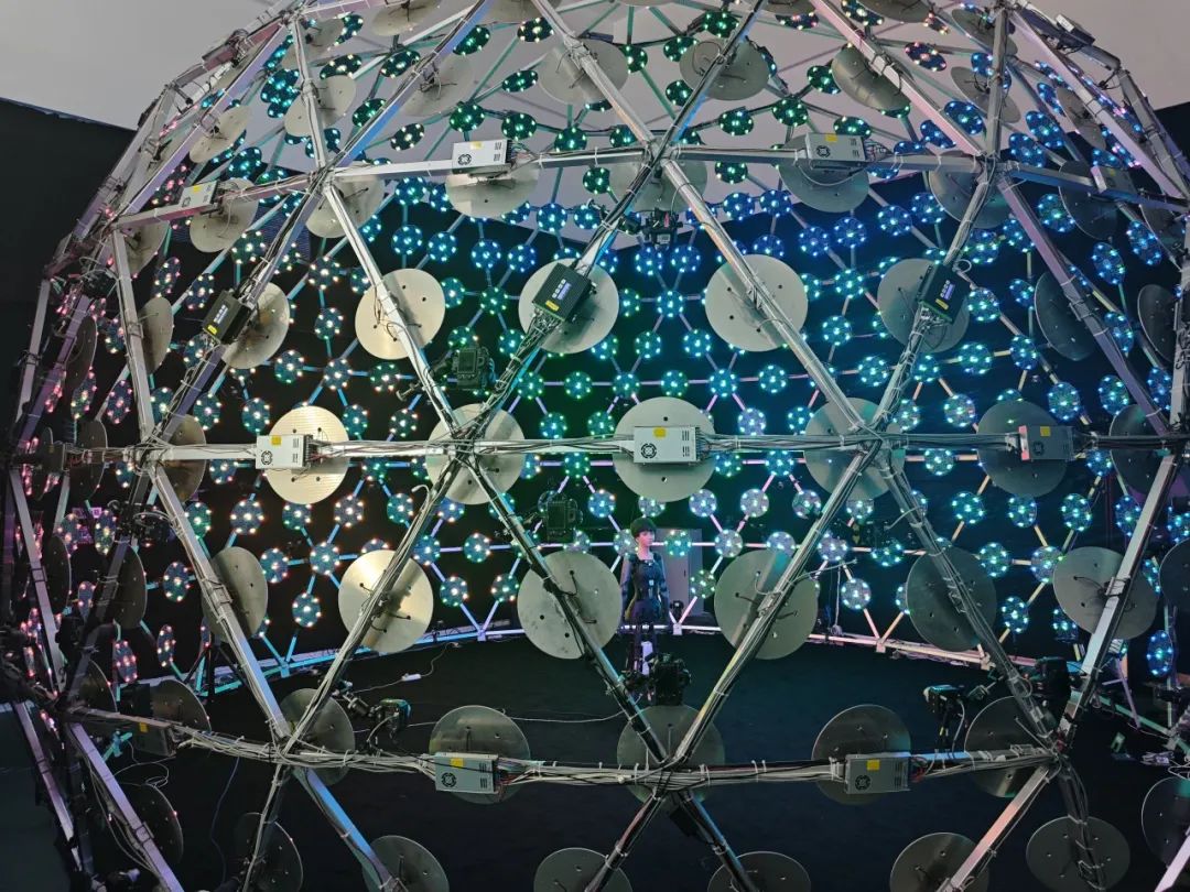 上科大如何能够在短时间内集中诞生一批高质量论文?伴随着这个疑问,记者走进这些论文的诞生地之一——多学科人工现实工作室(Multi-disciplinary Artificial Reality Studio,以下简称“MARS”),进入MARS,一个巨大的金属结构穹顶映入眼帘,在这个穹顶的金属结构之上则又绑了许多摄像机,在穹顶中间,一个仿生机器人正随着音乐剧的播出而做着相应的表演动作。据MARS负责人许岚介绍,这一“半圆”是由实验室所建设的具有自主知识产权的Lightstage穹顶光场系统,其具有国际领先水平的动态扫描设备,结合先进的光场成像算法,可以重建小到蛋白质结构大到城市物3D数据模型基于智能成像技术。