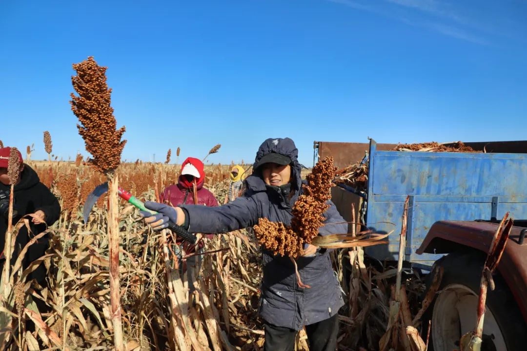 刘艳青从今年4月种下高粱、玉米等农作物,到10月开始收割,夫妻俩忙得不可开交,由于这片高粱地在山坡上,机器不好收割,又希望早日将粮食颗粒归仓,他们邀请了邻里乡亲,共同享受这份丰收的喜悦,并按照约定,为前来帮忙的村民支付工钱。