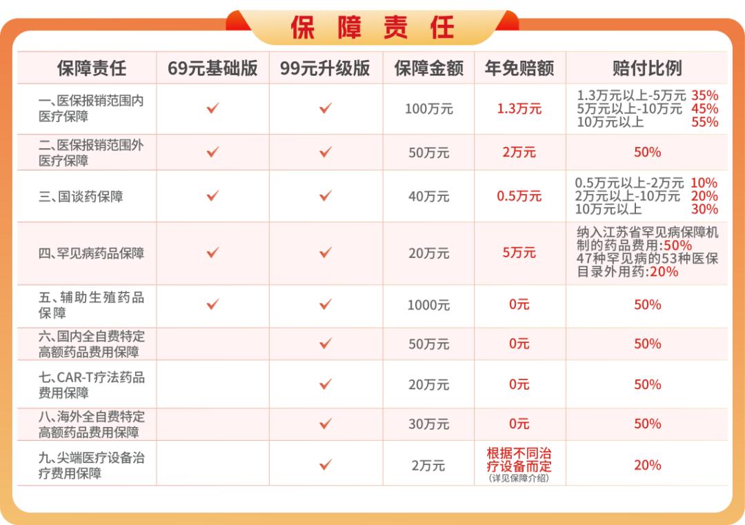 69元基础版保费不变、保障扩容。新增辅助生殖药品保障,国谈药种类再增加,保障责任扩充至5项,进一步为患者减负!