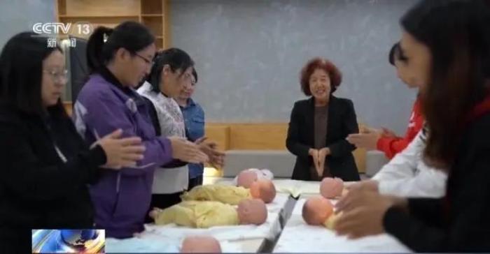 据了解,当地定期会举办这样的技能培训,学员主要是大龄群体。这次培训周期为13天,共104个课时。培训结束后,通过专业认定机构考试的学员,将获得初级育婴师资格证。