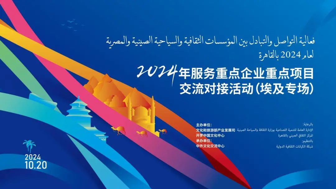 2024年10月19日至21日,由文化和旅游部产业发展司和开罗中国文化中心联合主办,中外文化交流中心承办的“2024年服务重点企业重点项目交流对接活动(埃及专场)”在开罗成功举办。此次活动由文化和旅游部产业发展司负责同志率领中国数字文化企业代表团参加中埃企业交流座谈会、实地调研当地企业及文化机构、拜会当地文化和旅游相关部门等。活动旨在为中国企业与埃及企业之间搭建桥梁,凝聚共识,与埃及文化企业及政府机构建立更紧密的联系,共同探索数字文化领域的合作潜力,进一步促进资源共享、加强共商共建、实现互利共赢。