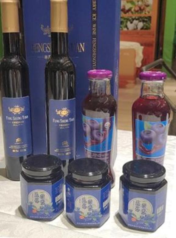 蓝莓果富含花色苷、SOD、熊果苷、维生素及多种矿物质元素。被国际粮农组织列为“人类五大健康食品之一”。新宾满族自治县冯家蓝莓种植专业合作社“丰晟源”蓝莓采摘于海拔500米以上的长白山区,昼夜温差大,集糖高,口感甜,水质清澈无污染,士壤有机质含量高,被认定为“生态原产地保护产品”、并已通过“绿色食品”认证。经过沈阳农业大学小浆果加工课题组多年研究,以蓝莓为原料,生产蓝莓冰酒、蓝莓果汁、蓝莓果酱等系列产品。