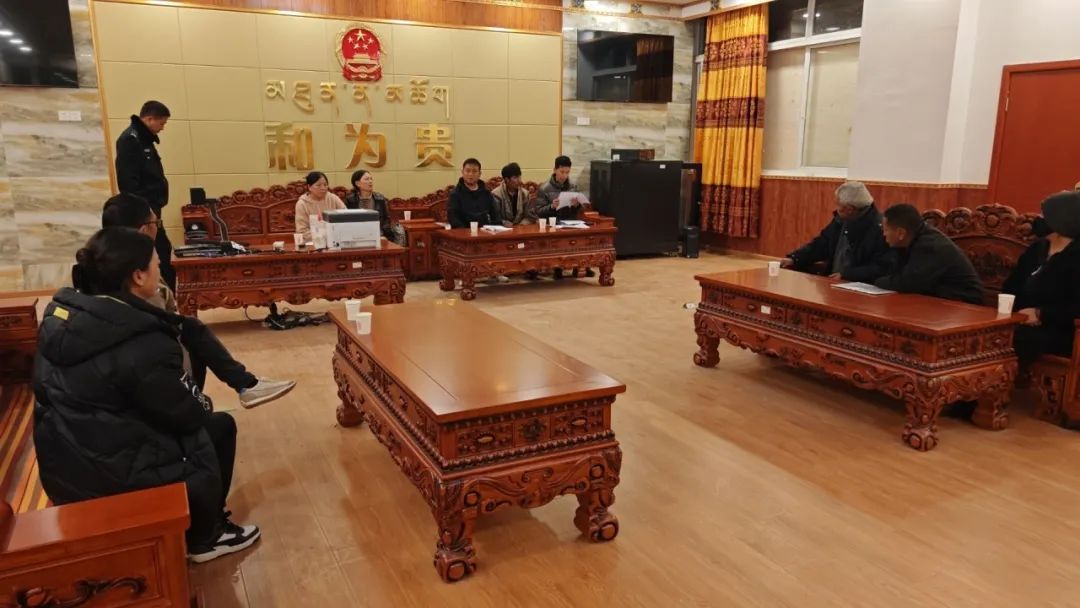 在以“和为贵”的石榴籽调解室,法院工作人员以妥善平衡双方利益冲突为切入点,结合当前草场政策、法律法规的相关规定,就草场承包经营权及财产继承的法律规定向双方当事人进行了陈列说明,并就现存的草场使用权、草场界限划分、远牧点搬迁等问题,对双方当事人的争议点进行了释法明理。另一方面,达扎寺镇网格员在法官的专业指导下,深度参与了此次草场纠纷调解。网格员以情理、法理相结合的方式,从亲情角度来打动双方当事人,通过感化说服解开了双方当事人多年来的心结。夜暮降临,经过6-7个小时的调解,扎某与罗某就草场的使用及收益达成和解协议,至此,长达7年的草牧场纠纷得以妥善化解,破碎的亲情得以弥合。