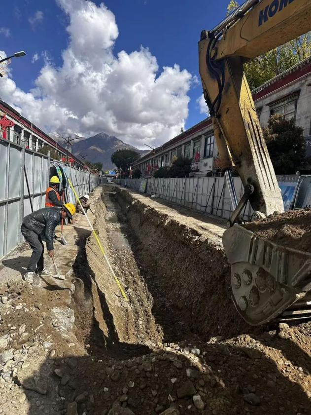 朵森格路分三段同时开展施工,目前正在进行新管网铺设工作。根据各路段水文条件差异,将由原来直径800毫米的雨污合流单管改装为直径1至1.4米的全新排水管道,将大力改善和提升拉萨市政基础设施服务水平和质量,完善区域排水系统,优化现状排水体系,为拉萨主城区内部排水提供有利条件。