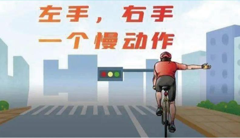 【法条链接】——《中华人民共和国道路交通安全法实施条例》第七十二条:在道路上驾驶自行车、三轮车、电动自行车、残疾人机动轮椅车应当遵守下列规定:……(四)转弯前应当减速慢行,伸手示意,不得突然猛拐;……