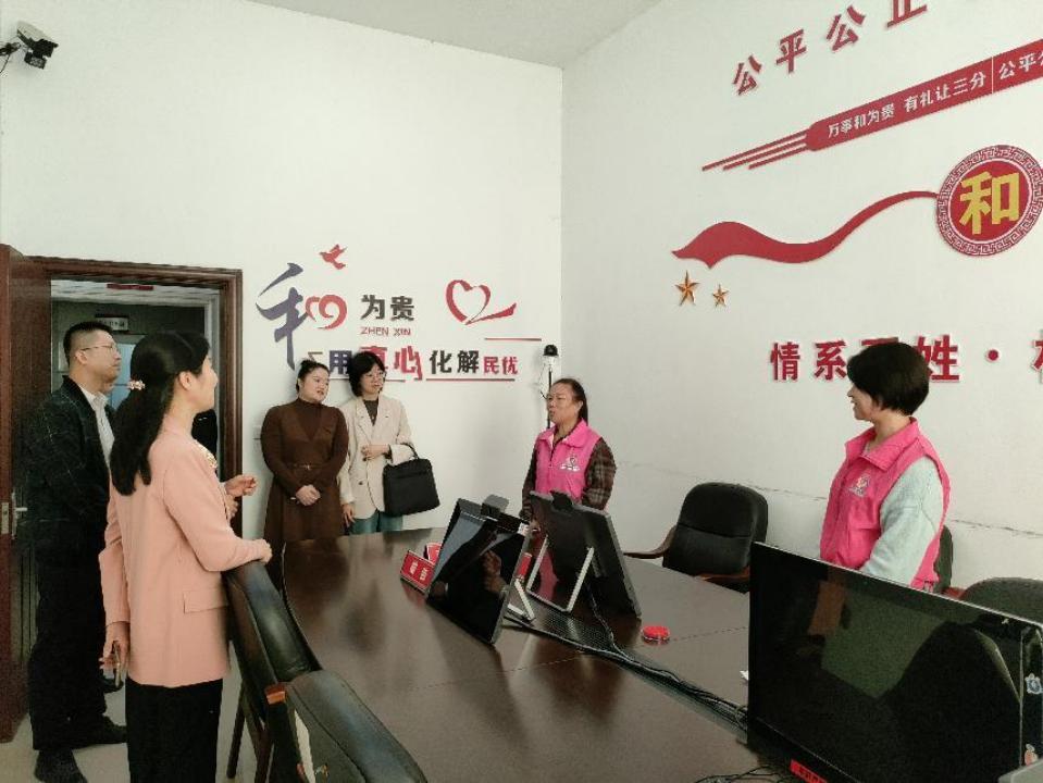 调研组一行首站来到上栗县法院家事法庭,与县法院负责同志及工作人员面对面交流,认真听取了关于案件受理、调解流程的介绍以及创新建立矛盾化解机制的探索进程,向巾帼志愿调解员详细询问了当前诉前柔性调解取得的成效。