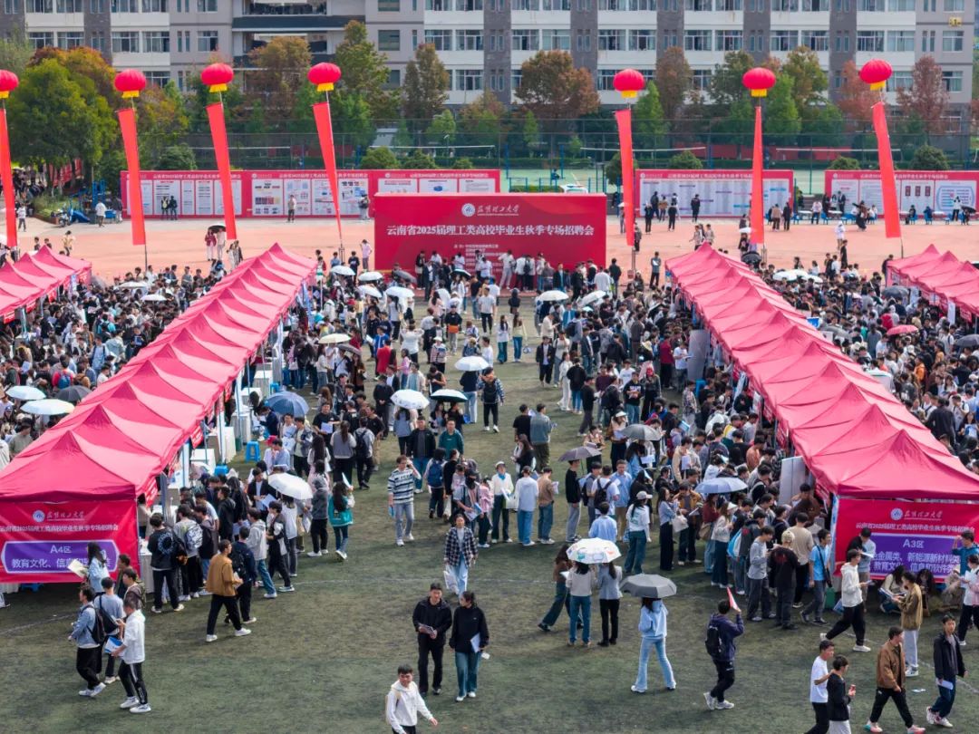 10月24日,云南省2025届理工类高校毕业生秋季专场招聘会在昆明理工大学呈贡校区举办。本次招聘会面向全省高校及理工类学科专业应往届毕业生开放,吸引了2.8万余名省内外毕业生到场参会。来自云南、四川、重庆、广东、浙江等20余个省市的300余家优质企事业单位参会,其中央企国企、世界500强及上市公司等高质量用人单位超过80%,云南省内参会单位近50%,为毕业生提供涵盖本硕博不同学历层次的15000余个有效就业岗位。