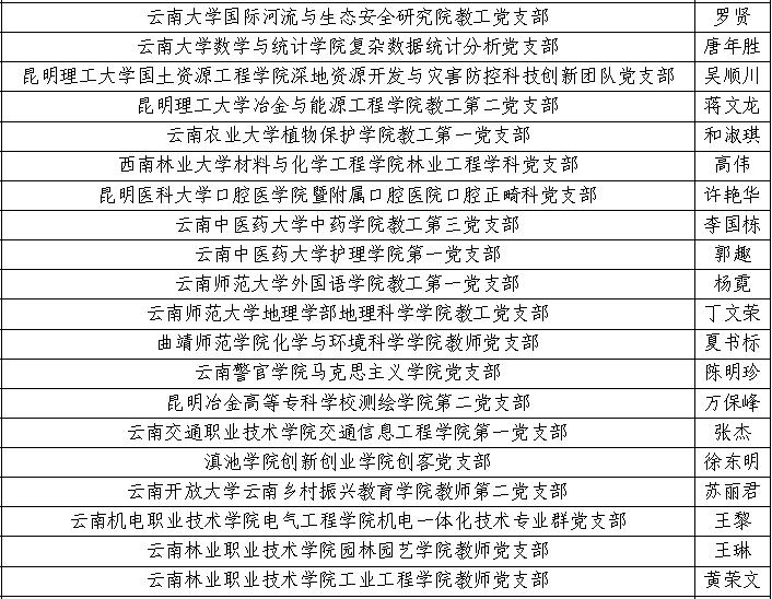 近日,教育部公示了全国高校“双带头人”教师党支部书记“强国行”专项行动团队名单,全国1486人入选。其中,云南15所高校的20位老师上榜。