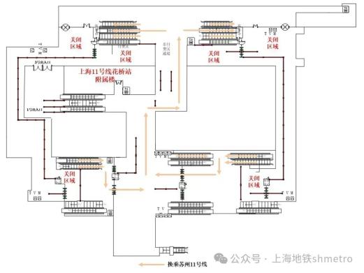 申通地铁集团介绍,为配合2024年第七届中国国际进口博览会安全、顺利进行,根据公安部门有关规定,苏州轨道交通决定于10月25日至11月12日关闭11号线花桥站东西两端换乘连廊(含“Metro大都会、苏e行专用通道”)。现场将按照公安部门要求及客流情况,采取限流、分流措施,乘客可根据指引有序从中部换乘连廊、站外广场进行换乘,关于进博会期间乘客换乘通行变更具体调整如下↓