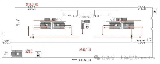 通过出站闸机后,从3号口、4号口出站至上海花桥站1号口进站换乘。